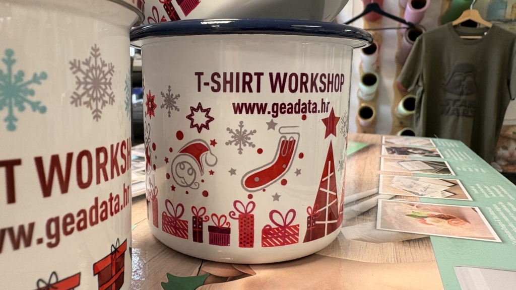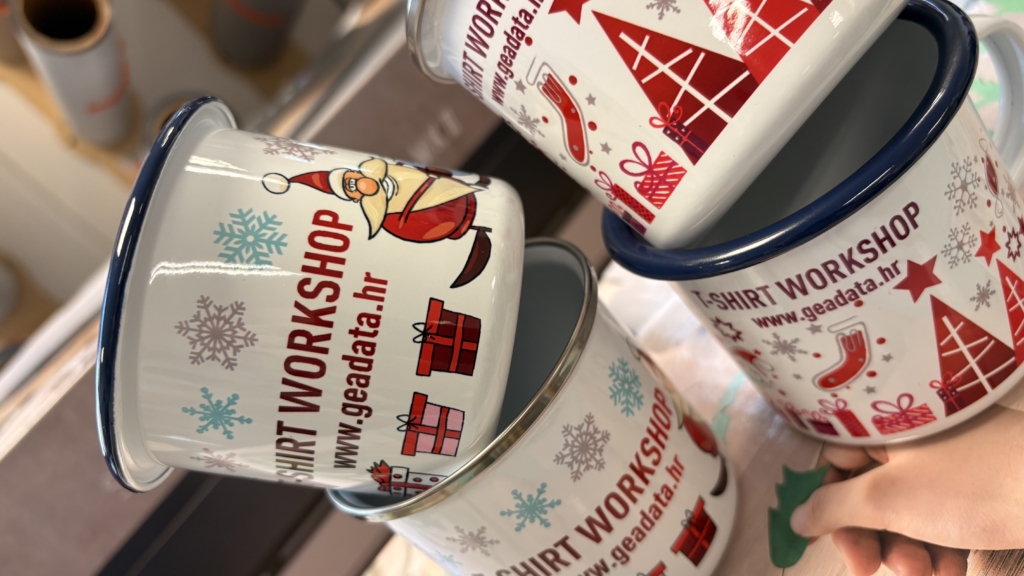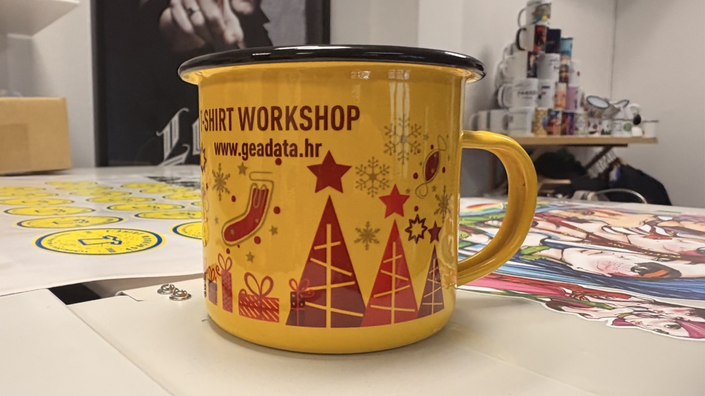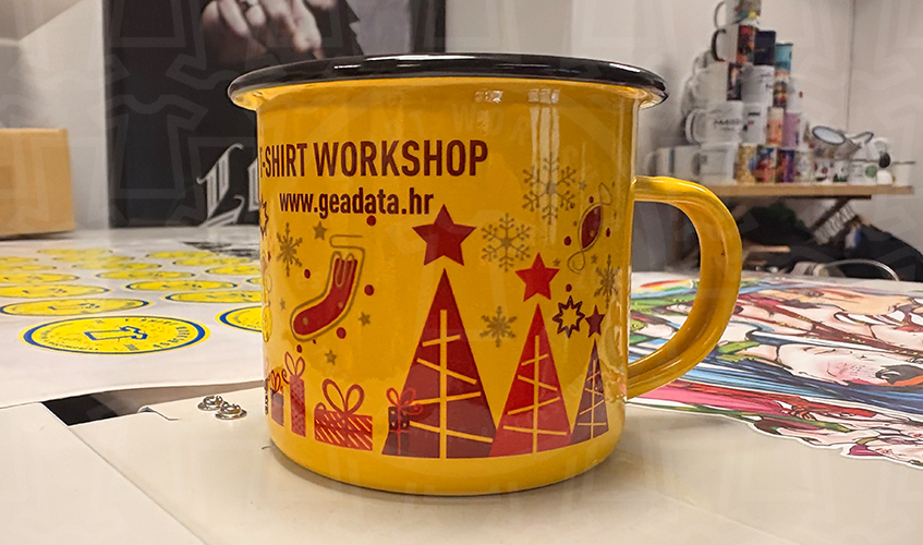 Uz klasične šalice nudimo i tisak na emajlirane metalne lončiće.